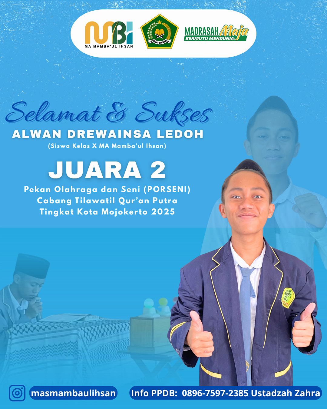 Juara 2 PORSENI Cabang Tilawatil Qur'an Putra Tinkgat Kota Mojokerto