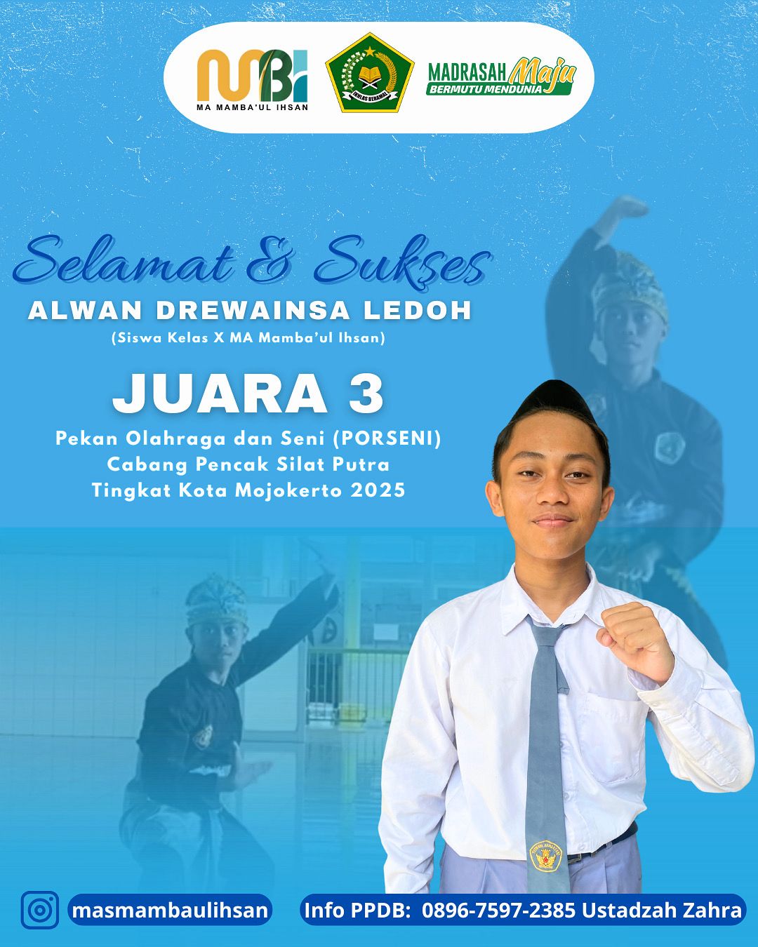 Juara 3 PORSENI Cabang Pencak Silat Putra Tingkat Kota Mojokerto