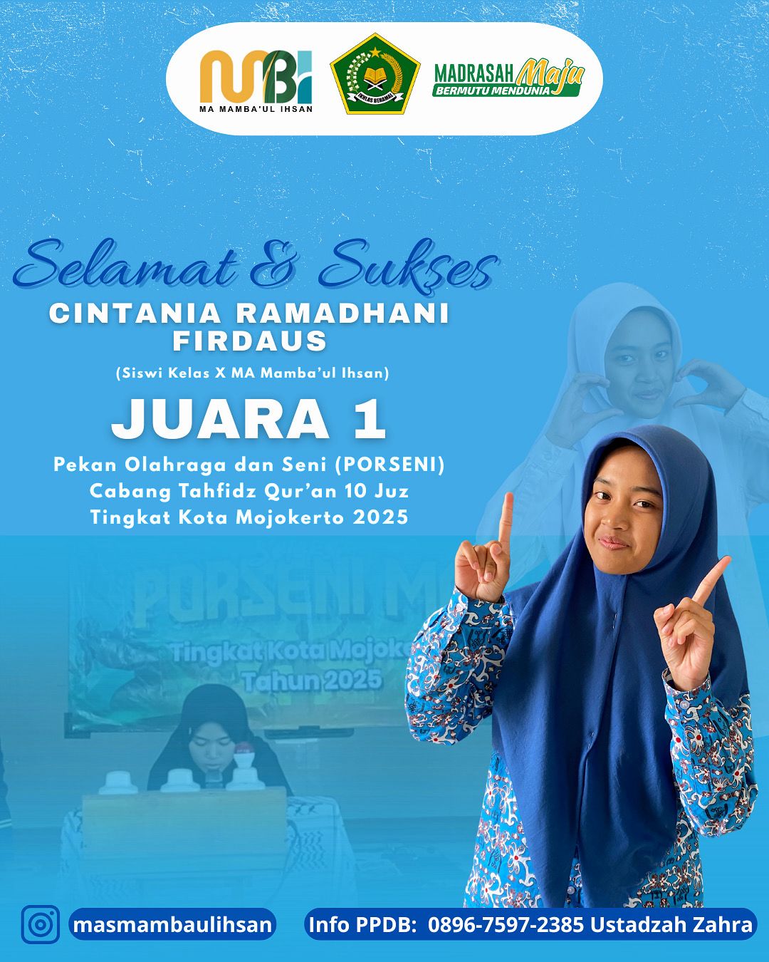 Juara 1 PORSENI Cabang Tahfidz Qur'an 10 Juz Tingkat Kota Mojokerto
