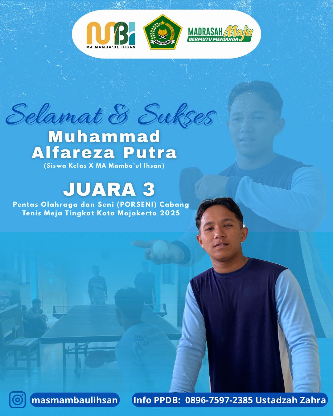 Juara 3 PORSENI Cabang Tenis Meja Tingkat Kota Mojokerto